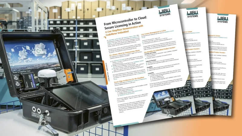 At Embedded World 2026, Wibu-Systems will present a live, mobile CodeMeter Embedded demonstrator that brings secure licensing directly into a realistic shopfloor setup. The compact demonstrator represents a complete, isolated production network, including edge infrastructure, firewall separation, microcontroller-based devices, and live access to CodeMeter License Portal. It shows how resource-constrained embedded systems without direct Internet connectivity, and even without their own TLS stack, can securely consume licenses from local dongles or cloud-backed containers. License activation and revocation are performed live, with immediate effects visible on the connected devices, making licensing processes tangible and transparent in an industrial context.