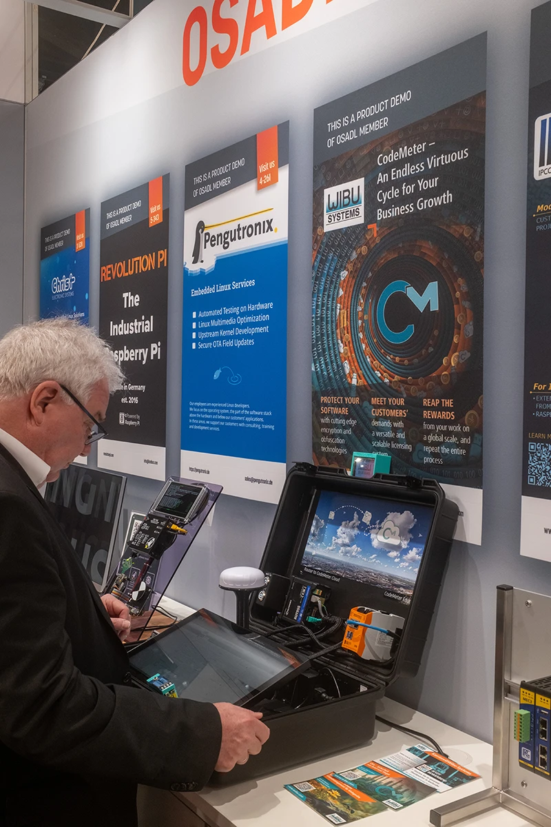 This year, we are again exhibiting as part of the OSADL collective space together with other OSADL members. OSADL’s ultimate goal is to help companies use Open Source Software in industrial products sustainably, supporting product development with expert knowledge and a broad network, assisting with compliance for legal requirements and safety/security standards, and representing member and community interests.